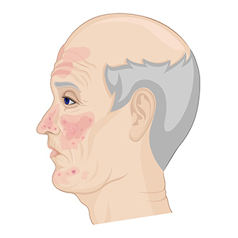 주사(rosacea) 질환이 악화되어 염증성 병변이 함께 발생한 경우