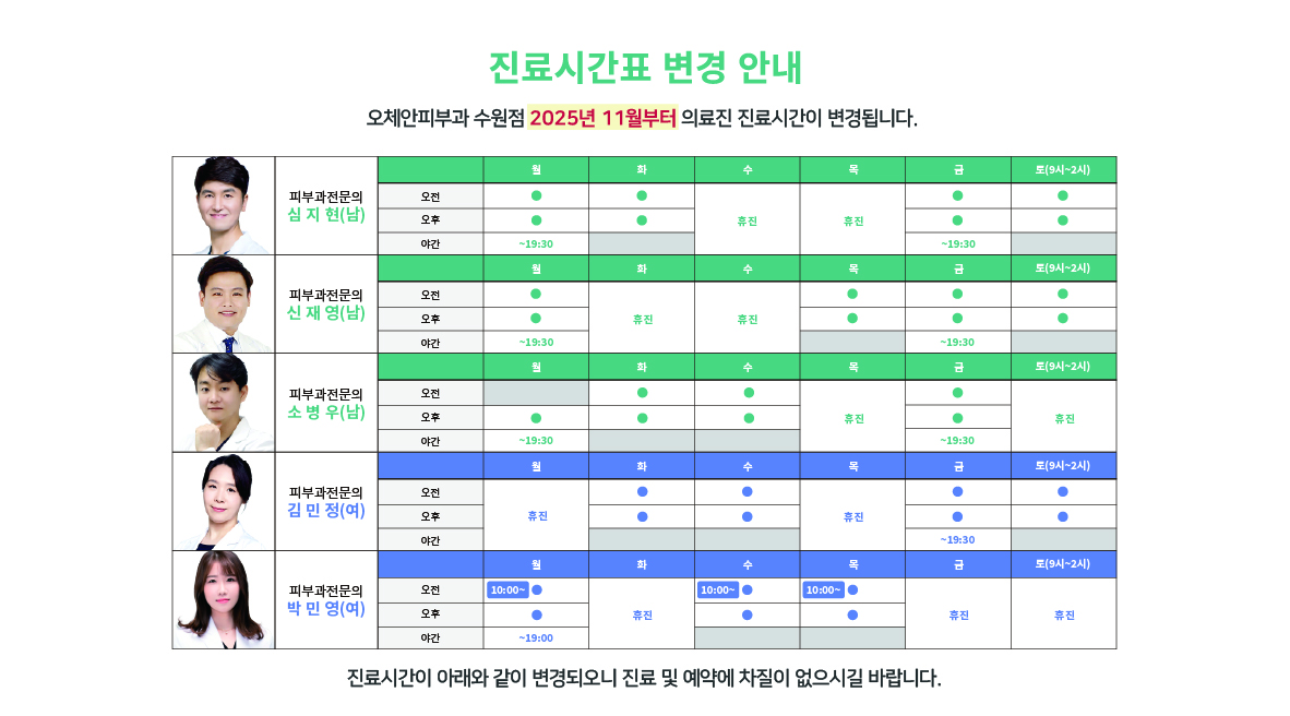 원장님 진료시간표를 확인하고 내원해 주세요