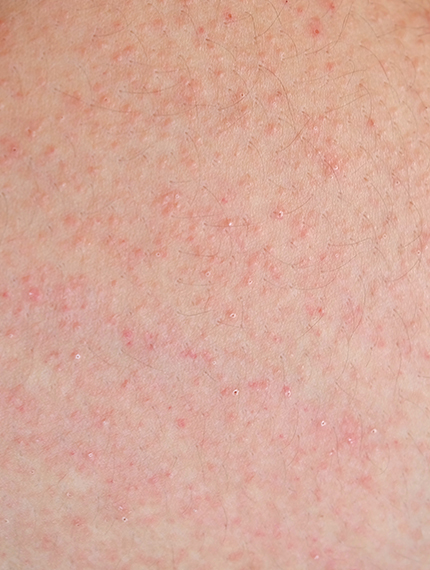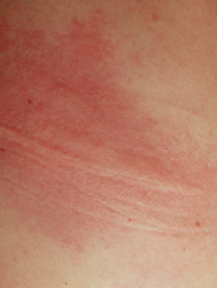 흔한 질환으로 피부가 빨갛게 부풀어 오르는 발진(팽진)과 가려움증이 특징인 피부질환입니다.